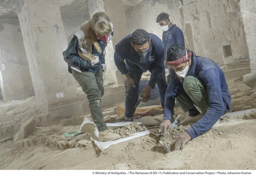 Wir hatten erstmalig unsere Expertin für die Rekonstruktion des Mundöffnungsrituals, Dora Olsen, sowie unseren Fotografen, Franz Nagy, dabei. Unser Team hat sich zudem mit Klara Dietze (Leipzig) weiter vergrößert. Sie wird in den kommenden Jahren die archäologische Aufarbeitung und Erfassung der Sarkophaghalle in KV 11 übernehmen. Lea Röfer beschäftigt sich mit der Rekonstruktion des Sarkophages von Ramses III, dessen Deckel sich heute im Fitzwilliam Museum in Cambridge befindet.